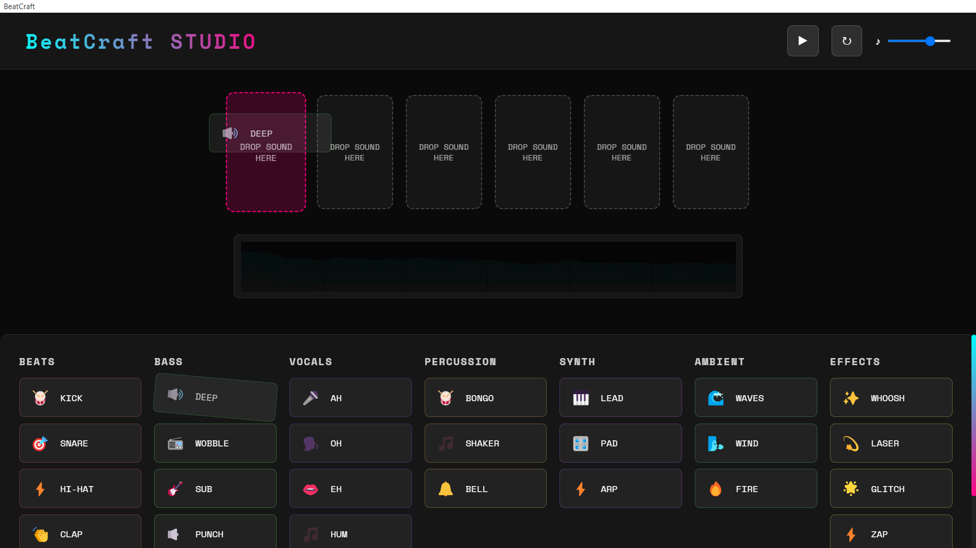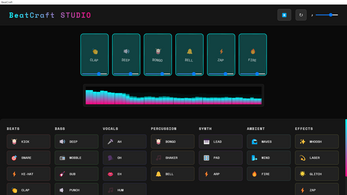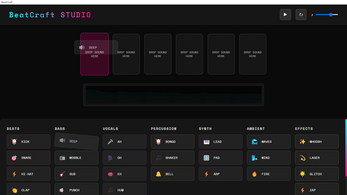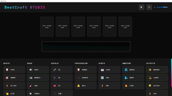 Welcome to BeatCraft STUDIO, a minimalist and interactive beat-making tool that lets you create your own unique music by simply dragging and dropping sounds.